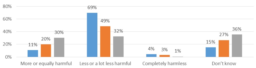 „Lidé nebudou používat alternativní zdroje nikotinu, když nebudou rozumět rozdílu,“ zdůrazňuje Ann McNeillová, která vyzývá odborníky k tomu, aby pomohli s tím, jak povědomí lépe šířit. Zároveň připomíná, že pokřivené vnímání rizik e-cigaret je ještě větší v mnoha evropských zemích. Problém přitom zřejmě je, že se lidé mylně domnívají, že škodlivá je hlavně závislost. I zde ovšem hraje roli způsob, jak se nikotin do těla dostává – a také v jakých dávkách. Například nikotinové žvýkačky nebo náplasti dodávají nikotin pomaleji a jsou tak méně návykové.