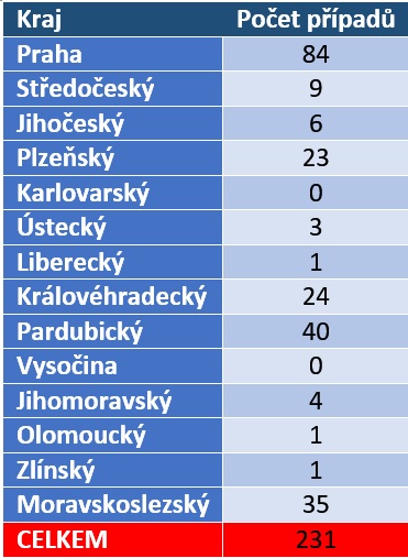 Nemocní jsou v 12 ze 14 krajů, bez nákazy jsou jen Karlovarský kraj a Vysočina. V Praze, kde byla už loni vyhlášena epidemie spalniček, bylo 84 případů. Za posledních deset dní jejich počet stoupl významně v Pardubickém, Moravskoslezském a Královéhradeckém kraji.