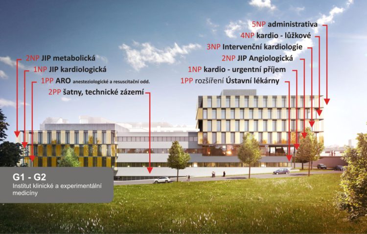 V nové části IKEM vznikne společný urgentní příjem, oddělení ARO nebo kardiologická, metabolická a angiologická jednotka intenzivní péče. Rozšíří se také ústavní lékárna a technické zázemí nemocnice. Celkově vznikne 56 nových lůžek. „Dostavba nám umožní rozvoj našich klíčových programů, neboť v současné době jsme již na svých kapacitních i prostorových limitech,“ prohlásil ředitel IKEM Michal Stiborek na včerejší tiskové konferenci s ministrem zdravotnictví Adamem Vojtěchem, kterou přijel osobně podpořit i premiér Andrej Babiš. „Nové pavilony bychom chtěli slavnostně otevřít v roce 2023,“ dodal Stiborek.