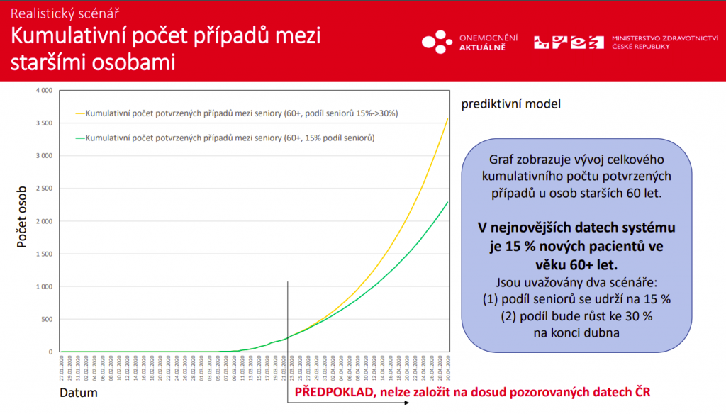 Počet nakažených covid-19 bude v nadcházejících dnech a týdnech neodvratně růst, data ale v tuto chvíli naznačují, že bychom se mohli vyhnout italskému a španělskému scénáři. Zatím se totiž u nás daří chránit nejohroženější seniorní populaci, což se v inkriminovaných státech nepovedlo. Podle včera zveřejněné predikce by přitom na konci března mělo být v Česku kumulativně tři tisíce a na konci dubna 15 tisíc potvrzených případů. Pokud se přitom bude dařit udržet procento nakažených seniorů na současné úrovni, měly by české nemocnice situaci ustát.