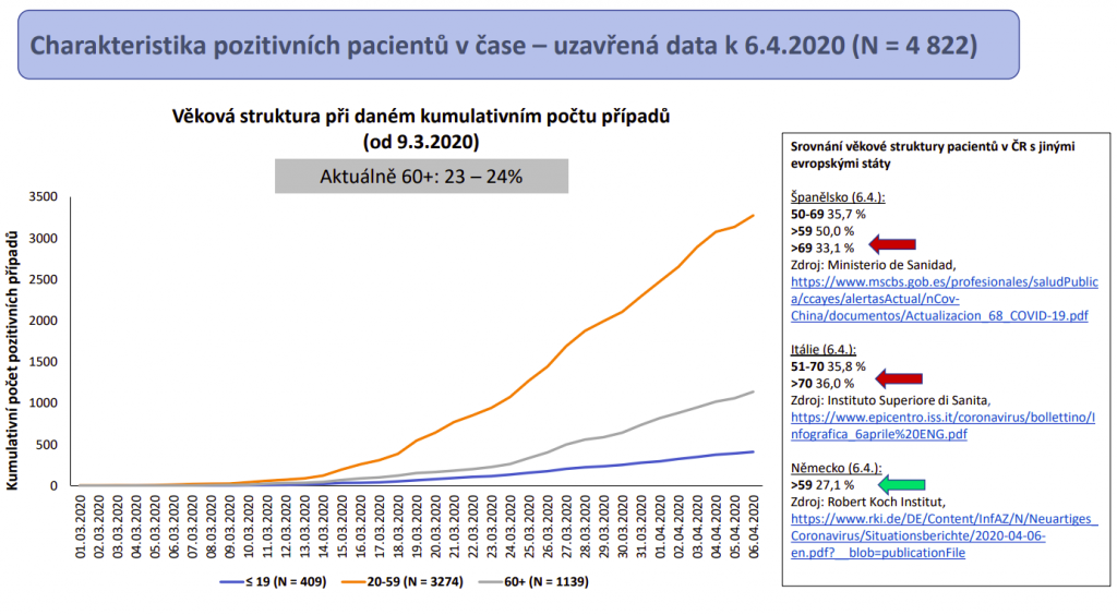 Podstatné ovšem je, že se u nás daří uchránit zranitelnou populaci a nákaza se nekontrolovaně nešíří. Je pravda, že podíl seniorních lidí v celkovém počtu nakažených narůstá, ne ovšem nijak raketově. Zatímco před dvěma týdny bylo mezi diagnostikovanými 17 procent lidí v seniorním věku a minulý týden 21 procent, nyní jde o necelých 24 procent (nad 75 let je zhruba devíti procentům). Pravdou ovšem také je, že tato populace je častěji testována, v posledních dnech se testy hodně provádějí i v domovech pro seniory. Nákaza se přitom zatím dostala do 34 z celkem asi 1900 pobytových zařízení. Že jsme stále velmi daleko nepříznivému scénáři, ukazuje to, že v Itálii či ve Španělsku je nad 60 let celé polovině nakažených.