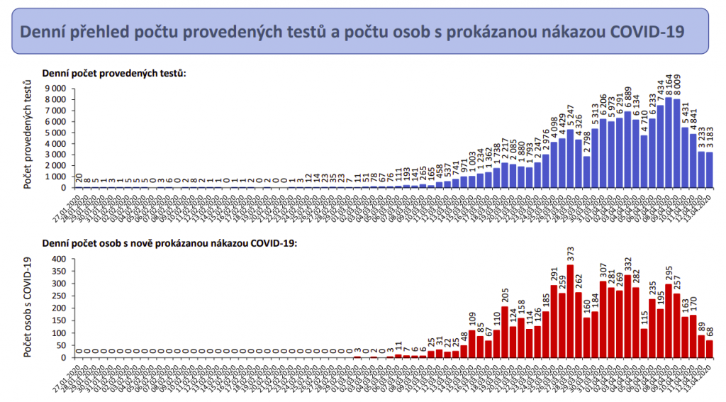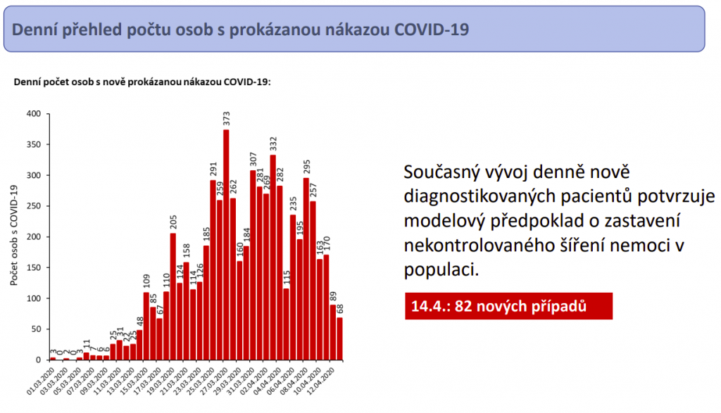 V úterý přitom bylo vyšetřeno 5870 vzorků, z nichž 82 bylo pozitivních. Od 30. března pak klesá podíl pozitivních případů v celkovém počtu testů, a to až na současných 4,6 procenta (Rakousko má 9,2 procenta, USA 18,8 procenta a Británie 29 procent). „Na druhou stranu se nenechme ukolébat, protože o Velikonocích bylo testů a odběrů méně. Musíme tedy počkat na vyhodnocení Velikonoc, jak se projeví v následujících týdnech – jestli se objeví nějaký nárůst daný tím, že někteří nedodržovali všechna opatření,“ dodává Vojtěch.