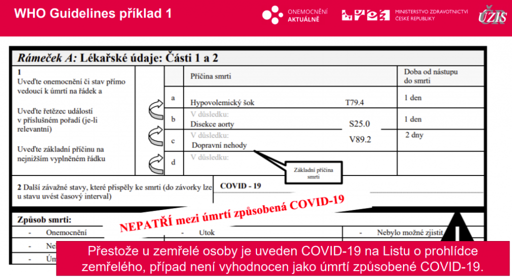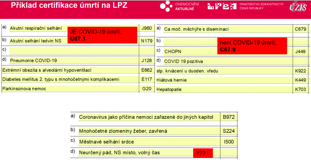 16. dubna zveřejnila Světová zdravotnická organizace (WHO) mezinárodní pokyny pro certifikaci a klasifikaci covid-19 jako příčiny úmrtí (český překlad vyšel 12. května). Do té doby tedy nebyly jasné instrukce, jak popsat a kódovat případy úmrtí u pacientů s covid.
