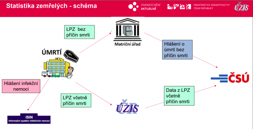 Aby bylo možné říci, co je a co není úmrtí na covid-19, tak podle ní vyžaduje podrobné informace o příčinách smrti, které uvádí lékař na listu o prohlídce zemřelého. Když lékař zjistí, že by se mohlo jednat o úmrtí související s covid, musí informaci nahlásit krajské hygienické stanici, která o případu vede další šetření. List o prohlídce zemřelého následně putuje do evidence vedené na ÚZIS (verze bez příčin úmrtí navíc putuje na matriku), kde by mělo být dodatečně možné identifikovat i ty případy, kdy nebyl zemřelý v databázi ISIN zaznamenán jako pozitivně testovaný. Informace o úmrtí se promítá také do registru obyvatel a informaci tak má i Český statistický úřad, přičemž ISIN je s těmito daty validován. Tím se může stát, že může dojít k úpravám počtu zemřelých i zpětně.