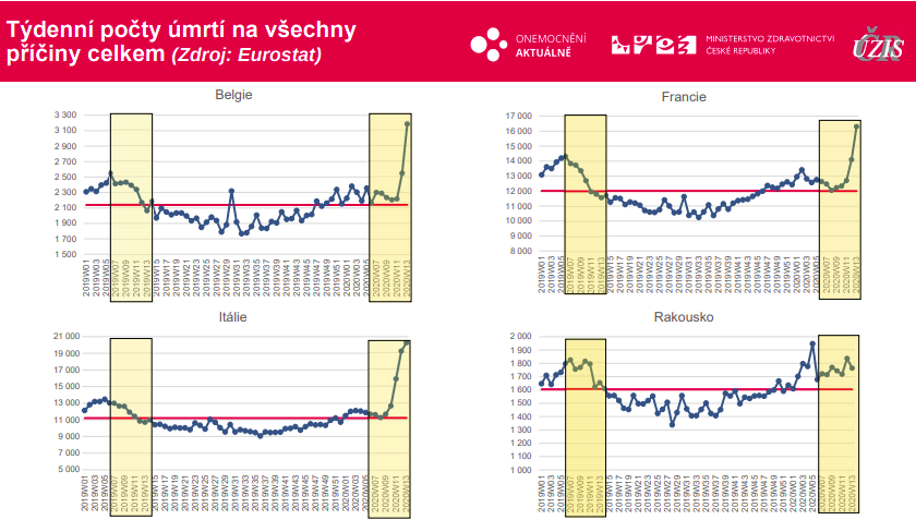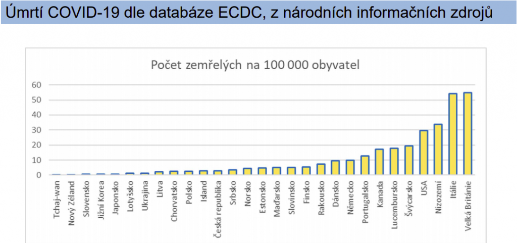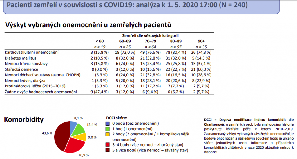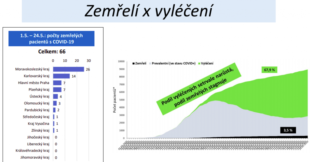 V Česku ale také čeká na schválení etickou komisí retrospektivní studie, která se má zaměřit právě na otázku, kolik pacientů u nás zemřelo s covid a kolik na covid. „My si myslíme, že pacientů není moc, ale jasná a přesná data na to nemáme. Proto jsem napnutý, jak ta studie dopadne,“ říká předseda České společnosti anesteziologie resuscitace a intenzivní medicíny profesor Vladimír Černý.