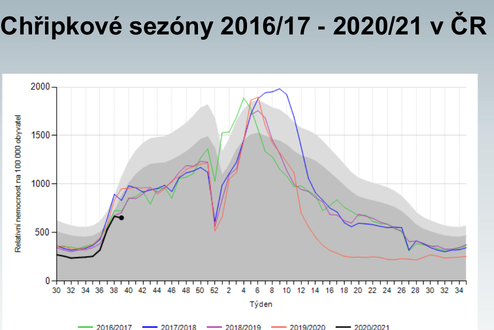 Když se ovšem vrátíme k poslední epidemii chřipky, i ta byla netypická. Trvala od čtvrtého do desátého týdne, kdy lékaře kvůli chřipkovým příznakům vyhledalo 1,15 milionu lidí, tedy 10,8 procenta populace (meziročně jde o standardní počty, které se pohybují mezi 800 až 1250 tisíci nemocných u lékaře). Intenzivní péči vyžadovalo 300 pacientů, u nichž byla chřipka laboratorně potvrzena, 61 lidí s chřipkou zemřelo (38 procent těchto případů a 23 procent zemřelých bylo mladších 65 let). Toto číslo je ovšem v horizontu pěti let zpátky nejnižší – epidemie totiž s příchodem března rázem ustala, a to nejen u nás, ale v celé Evropě.