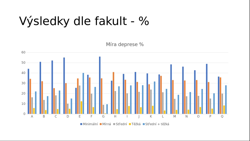 Tehdy se 3. LF rozhodla provést srovnávací studii mezi fakultami zaměřenou na výskyt deprese. Kvůli covidu sice byla odložena, před rokem se ji ale povedlo uspořádat ve větším měřítku, než se původně počítalo. Dotazníky tak byly rozeslány všem studentům denního studia na Karlově univerzitě, kterých je přes 35 tisíc. Návratnost byla 20 procent, tedy téměř 7700, na 3. LF pak šlo o zhruba 500 studentů (což je zhruba polovina celkového počtu).