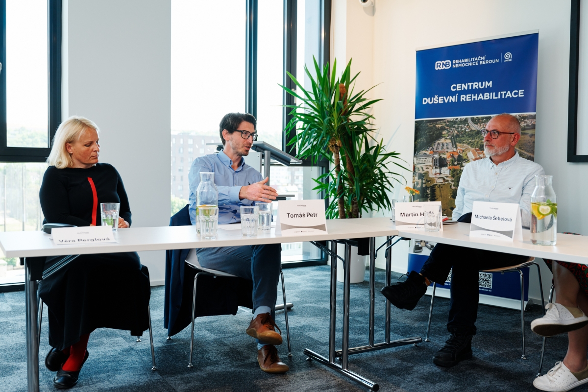 Zleva Věra Perglová, pracovnice pro zdravotní služby Lomikámen, Tomáš Petr, předseda psychiatrické sekce České asociace sester, a Martin Hollý, lékař Centra duševní rehabilitace Beroun.