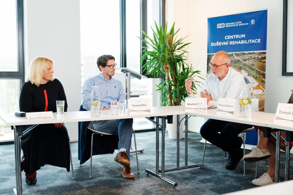 Zleva Věra Perglová, pracovnice pro zdravotní služby Lomikámen, Tomáš Petr, předseda psychiatrické sekce České asociace sester, a Martin Hollý, lékař Centra duševní rehabilitace Beroun.