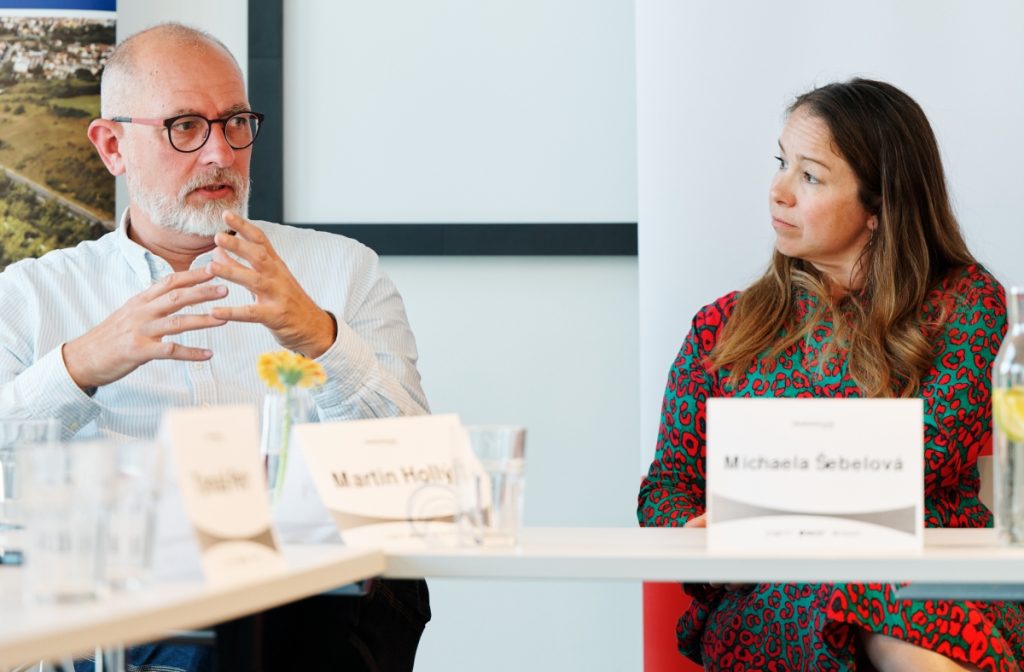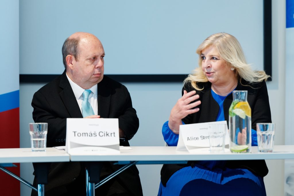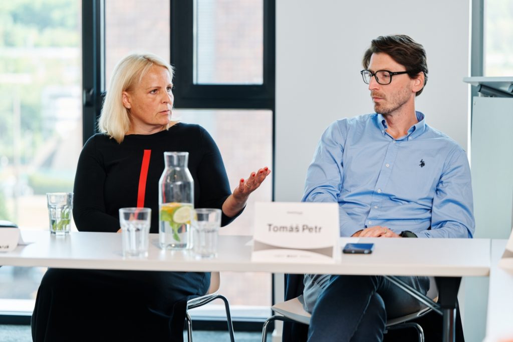 Hlavní sestra ČR Alice Strnadová a moderátor diskuze Tomáš Cikrt.