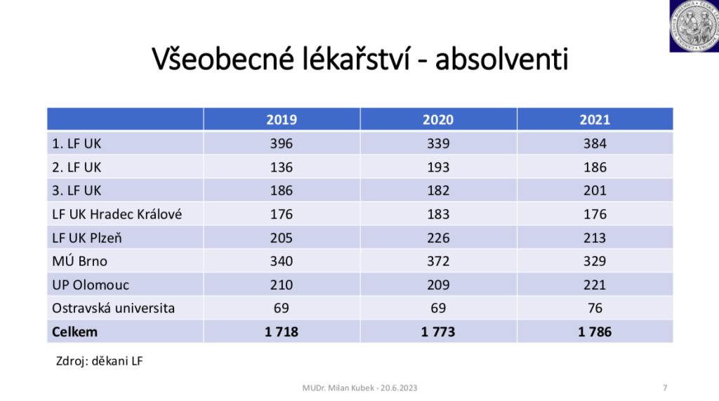 Počty studentů na všech osmi lékařských fakultách v Česku se pohybují každý rok kolem čísla 1700 až 1800, z čehož 300 až 350 z nich studuje v angličtině. „Máme-li mít lékaře, musíme si je vychovat. Nemá smysl pěstovat a vyrábět lékaře na export,“ uvedl na tiskové konferenci prezident České lékařské komory Milan Kubek, podle kterého jsou studenti v anglickém programu pro český zdravotnický systém předem „ztraceni“. „Nikdo si neplatí statisíce za to, aby studoval v České republice a potom zůstal v českém zdravotnictví za mizerný plat, který pobírají naši lékaři,“ nešetřil kritikou.