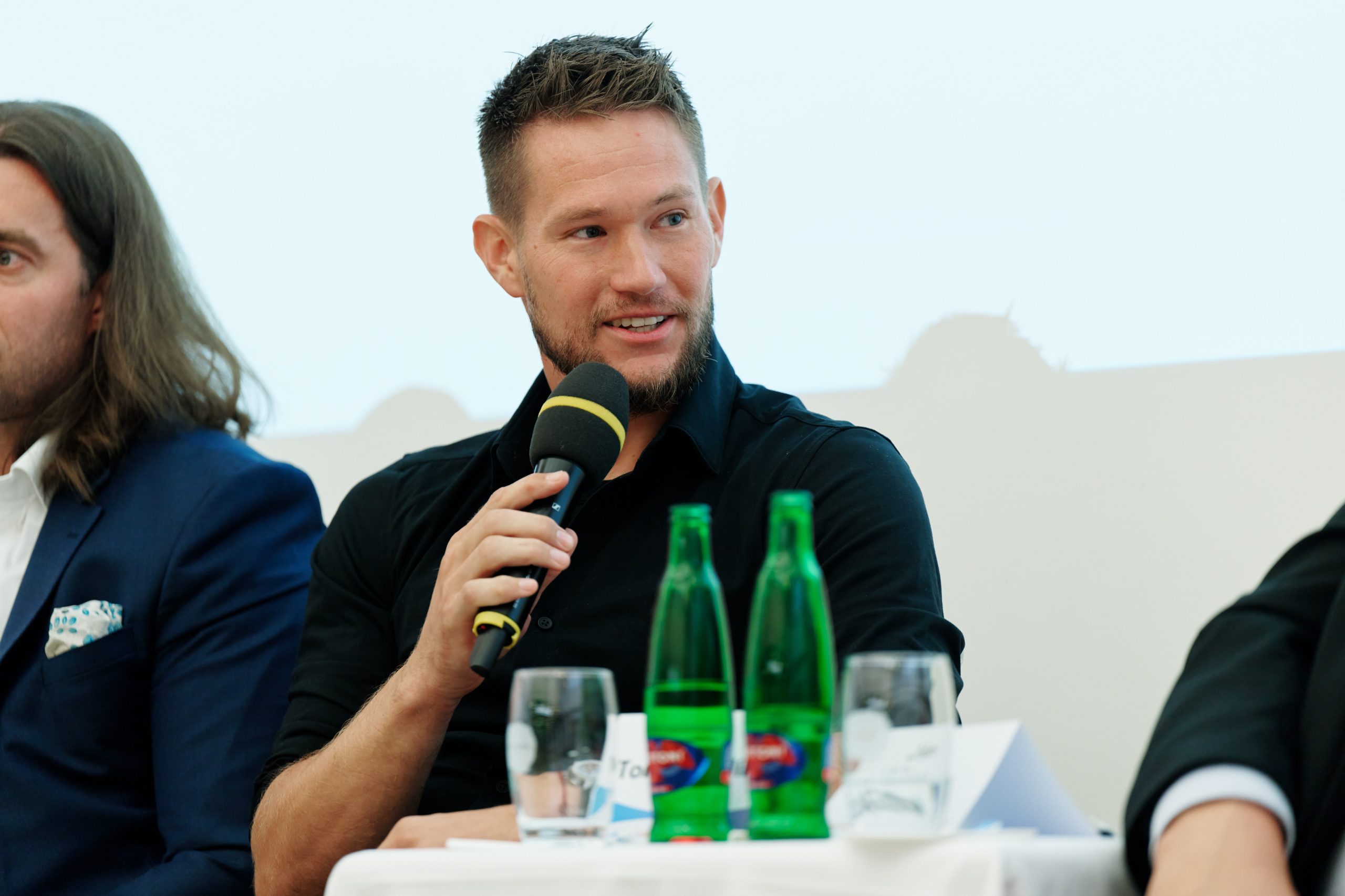 Fotbalový brankář Tomáš Vaclík během diskuse.