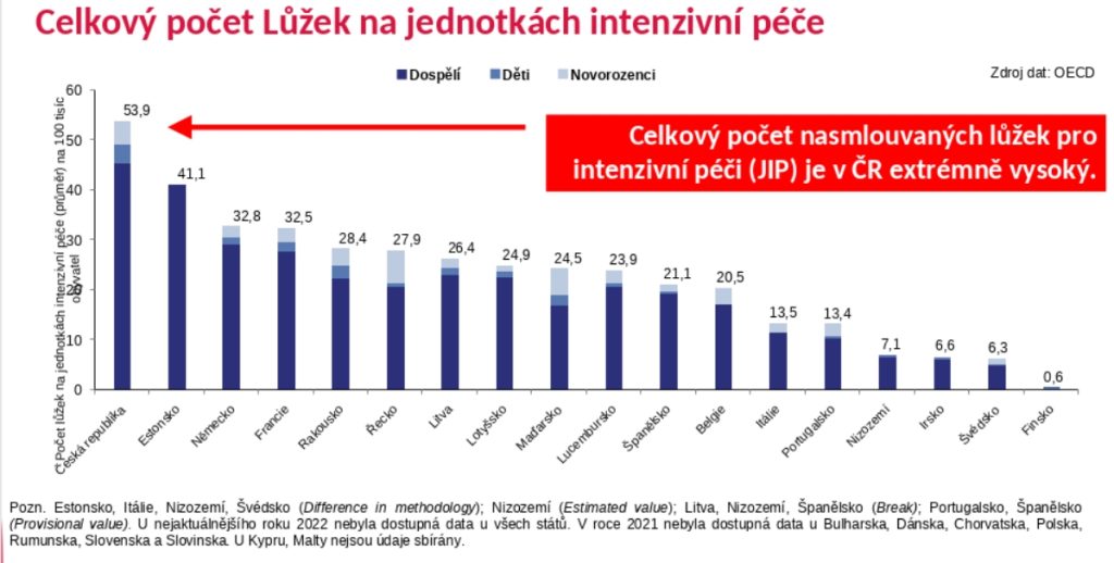 Když se přitom podíváme na počty nasmlouvaných JIP, máme jich o 30 procent více než v Německu. „Při zkušenosti z covidu se JIPová lůžka stávala JIPovými až ve chvíli, kdy je generál Šnajdárek vytáhl ze skladu. V každém případě počty signalizují, že je síť nějakým způsobem nezdravá. Hlavně však lůžkový fond intenzivní péče brzdí rozvoj toho, co budeme potřebovat stále více, a to dlouhodobé, následné a komunitní ošetřovatelské péče. Nejde přitom vůbec o peníze, ale o lidi, kteří tam musí pracovat. Nějaká evoluční restrukturalizace tedy bude muset přijít, protože musíme hledat personální rezervy,“ podtrhává Dušek.