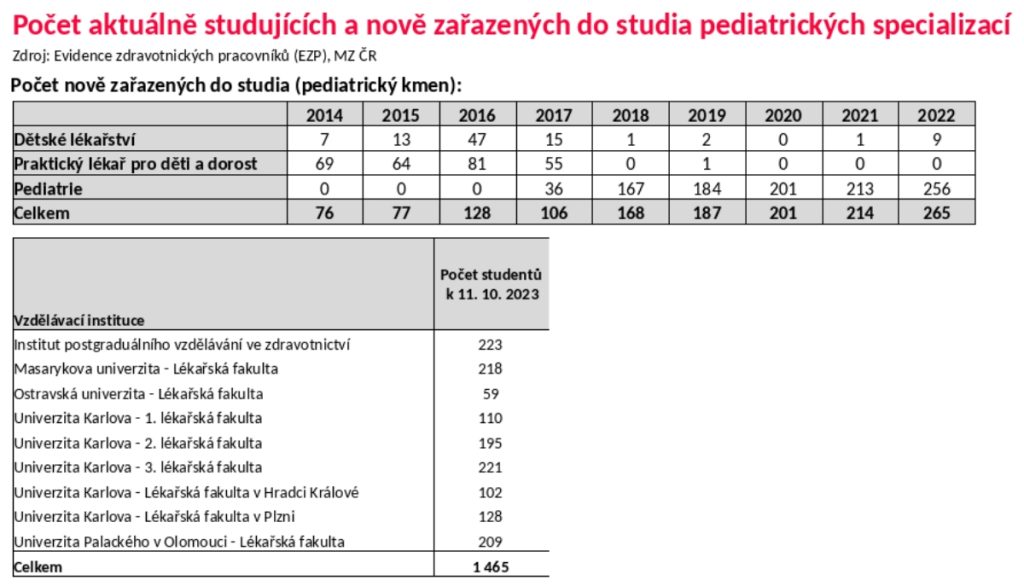 Faktem každopádně je, že bychom potřebovali velmi rychle do ordinací dětských praktiků přilákat skoro tisíc lékařů. Proto je třeba zaměřit se v závislosti na regionu na produkci vzdělávacího systému, redistribuci ve stávající síti dětských praktiků a to, že péči o děti v některých případech budou muset převzít jiné odbornosti, jako jsou nemocniční pediatři či praktici pro dospělé.