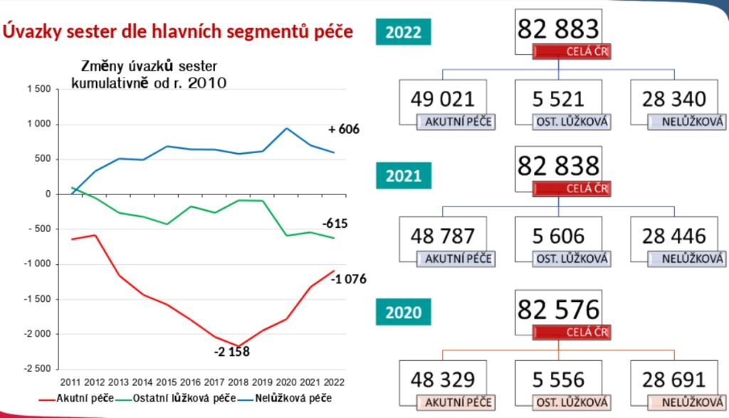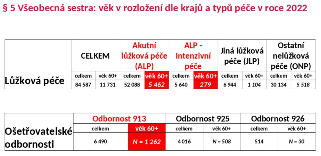 Největší tikající bomba v českém zdravotnictví se ale podle Ladislava Duška skrývá jinde. „Věkový profil zdravotních sester v ČR je velmi rizikový, protože přesně kopíruje českou populaci. V tuto chvíli máme 12 tisíc úvazků sester v důchodovém věku, které do pěti, sedmi let odejdou. Z toho šest tisíc úvazků je takto důchodově ohroženo v akutní lůžkové a intenzivní péči. Ale za 15 let nám hrozí odchod 40 procent tohoto kvalifikovaného ošetřovatelského personálu. Tady se musí okamžitě navyšovat, jinak nám úplně ujedou nohy,“ uzavírá profesor Dušek s tím, že se v tuto chvíli dokončují modely, jak navýšit vzdělávací kapacity pro zdravotní sestry.